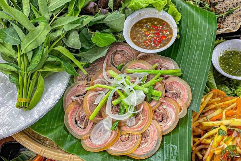 Bò tơ Năm Sánh là món đặc sản nổi bật với thịt bò non mềm mịn, ít béo, giàu dinh dưỡng, được chế biến đa dạng như nướng than hoa, xào lăn hoặc hấp lá sen. Món này không chỉ ngon mà còn tốt cho sức khỏe nhờ hàm lượng protein cao, không gây ngấy.