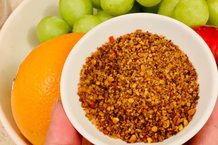 Muối tôm Tây Ninh, đặc sản nổi tiếng, được làm từ tôm khô rang với ớt và muối hạt, có vị cay nồng đặc trưng. Đây là gia vị lý tưởng để chấm trái cây tươi hoặc ăn kèm cơm trắng, được bán rộng rãi ở các chợ địa phương.