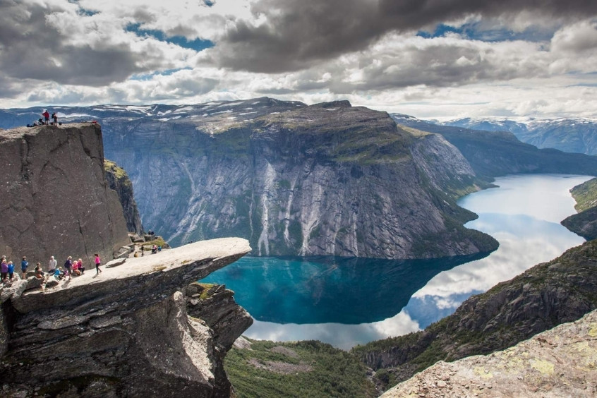 - Trolltunga: “Lưỡi quỷ” vươn ra giữa không trung, nằm chênh vênh trên vách núi cao 700m so với mặt hồ Ringedalsvatnet. Đây là địa điểm sống ảo đầy thách thức, dành cho những ai ưa mạo hiểm và đam mê cảnh sắc hùng vĩ. Hành trình trekking gian nan đổi lại là một bức tranh thiên nhiên tuyệt mỹ khiến bạn nghẹt thở.