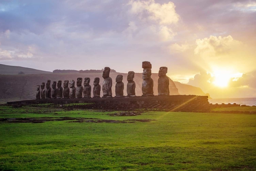 Nằm biệt lập giữa Thái Bình Dương, đảo Phục Sinh là một trong những nơi huyền bí nhất thế giới. Những bức tượng Moai khổng lồ, như những vị thần thời cổ đại, đứng im lìm giữa thảo nguyên nhìn về đại dương vô tận.