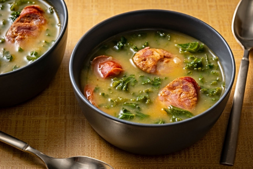 Món súp này được làm từ những nguyên liệu rất mộc mạc: khoai tây nghiền mịn, bắp cải thái sợi mỏng và xúc xích chorizo cắt lát. Khoai tây được nấu nhừ và nghiền nát, tạo nên độ sánh đặc cho súp. Sau đó, bắp cải thái sợi được cho vào và đun nhanh để giữ được độ giòn. Cuối cùng là xúc xích chorizo cay nhẹ được thêm vào, tạo nên hương vị đậm đà và hấp dẫn. Hương vị của súp là sự kết hợp hoàn hảo giữa vị béo của khoai tây, vị tươi của bắp cải và vị cay nồng của xúc xích.