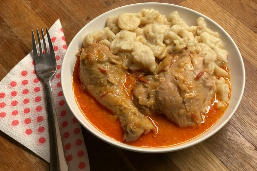 Món ăn này được làm từ thịt gà, hầm trong một loại nước sốt kem sánh mịn, thơm lừng mùi ớt bột paprika và hành tây. Paprika không chỉ tạo nên màu sắc đẹp mắt mà còn mang lại hương vị ngọt dịu và thơm nồng. Thịt gà được hầm đến độ mềm tan, gần như rã ra trong miệng, hòa quyện với nước sốt béo ngậy, làm say lòng bất cứ ai thưởng thức.