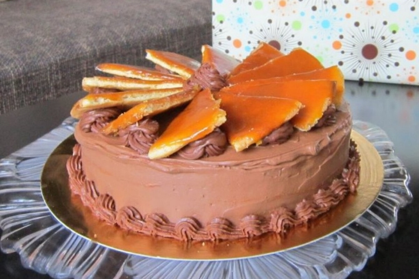 Bánh Dobos được làm từ 6 lớp bánh xốp mỏng, xen kẽ với lớp kem bơ sô cô la. Điểm nhấn của chiếc bánh là lớp caramel cứng bóng loáng ở trên cùng. Khi ăn, bạn sẽ cảm nhận được sự kết hợp tuyệt vời: lớp bánh xốp mềm mại, kem bơ tan chảy trong miệng và lớp caramel giòn tan, tạo nên một bản hòa tấu của các giác quan.