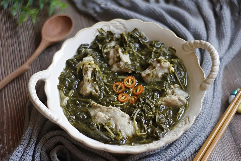Rau sắn muối chua là "ngôi sao" trong món cá chép om dưa phiên bản Phú Thọ, thay thế cho dưa cải chua, tạo nên hương vị đặc biệt khó quên. Ngoài ra, rau sắn muối chua còn có thể dùng để nấu canh sườn, xào tỏi hoặc đơn giản là chấm mắm ớt cũng đủ làm bữa cơm thêm phần hấp dẫn. Món ăn này không chỉ kích thích vị giác mà còn giúp giải ngấy hiệu quả, rất hợp để "thanh lọc" cơ thể sau những bữa tiệc thịnh soạn.