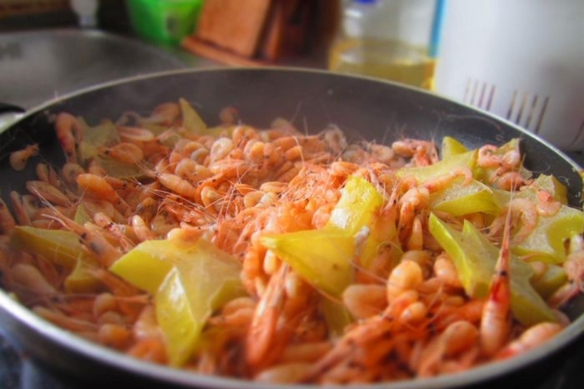 Tép dầu tươi ngon được chế biến thành nhiều món ăn dân dã mà hấp dẫn. Phổ biến nhất là tép dầu rang khế chua hoặc rang lá chanh thơm lừng. Khi rang, những con tép sẽ chuyển sang màu đỏ cam đẹp mắt, giòn rụm từ đầu đến đuôi, và tỏa ra mùi thơm kích thích vị giác. Cắn một miếng, bạn sẽ cảm nhận được vị mằn mặn, ngọt thanh của tép hòa quyện với vị chua của khế hoặc hương the nhẹ của lá chanh, tạo nên một sự kết hợp hoàn hảo.